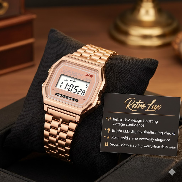 The RetroLux watch has become my go-to accessory for work and weekends. Its LED display is bright and precise, and the rose gold finish always catches compliments. Lightweight and comfortable, I barely notice it's there until I need to check the time.